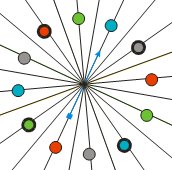 From the colour you immediately see the element of the triangle this sector belongs to, and the circles in bold indicate the tombs.