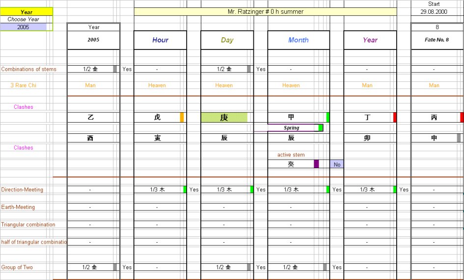 Here you see the personal pillars along with those of the current Major Fate and the year 2005 when the election for the Pope took place.
